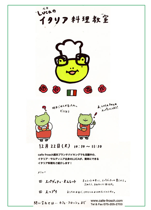 When a real Sardinian cook finds an art meeting point like Café Frosch, amazing things will happen. This time it promises to be an Adventure in capital letters for everyone. For the cook he will have to fight against his shyness and reveal his cooking secrets to the pepole who will join. And for the people who join that challenge will be to repeat those same secrets in their homes for family, friends or fiancé. This time we will start with two simple recepies. But next time it will get tougher. Get ready to make suppli and a pasta omelette. Even more great dishes to come sooooooon!