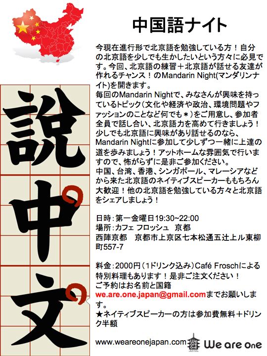 19:00 - 22:30 2500円(学生2000円) (ビュッフェ、ワンドリンク付) <要予約>