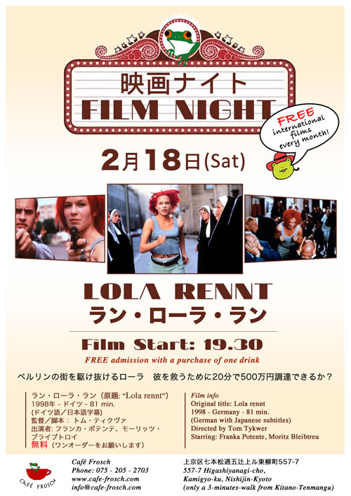 19:30より ドイツ出身のBiggi による映画紹介の後上映 無料!(one orderお願いします) -------------------------------------------- 2011年3月に終了した、Andrewの映画ナイトは、こちらから